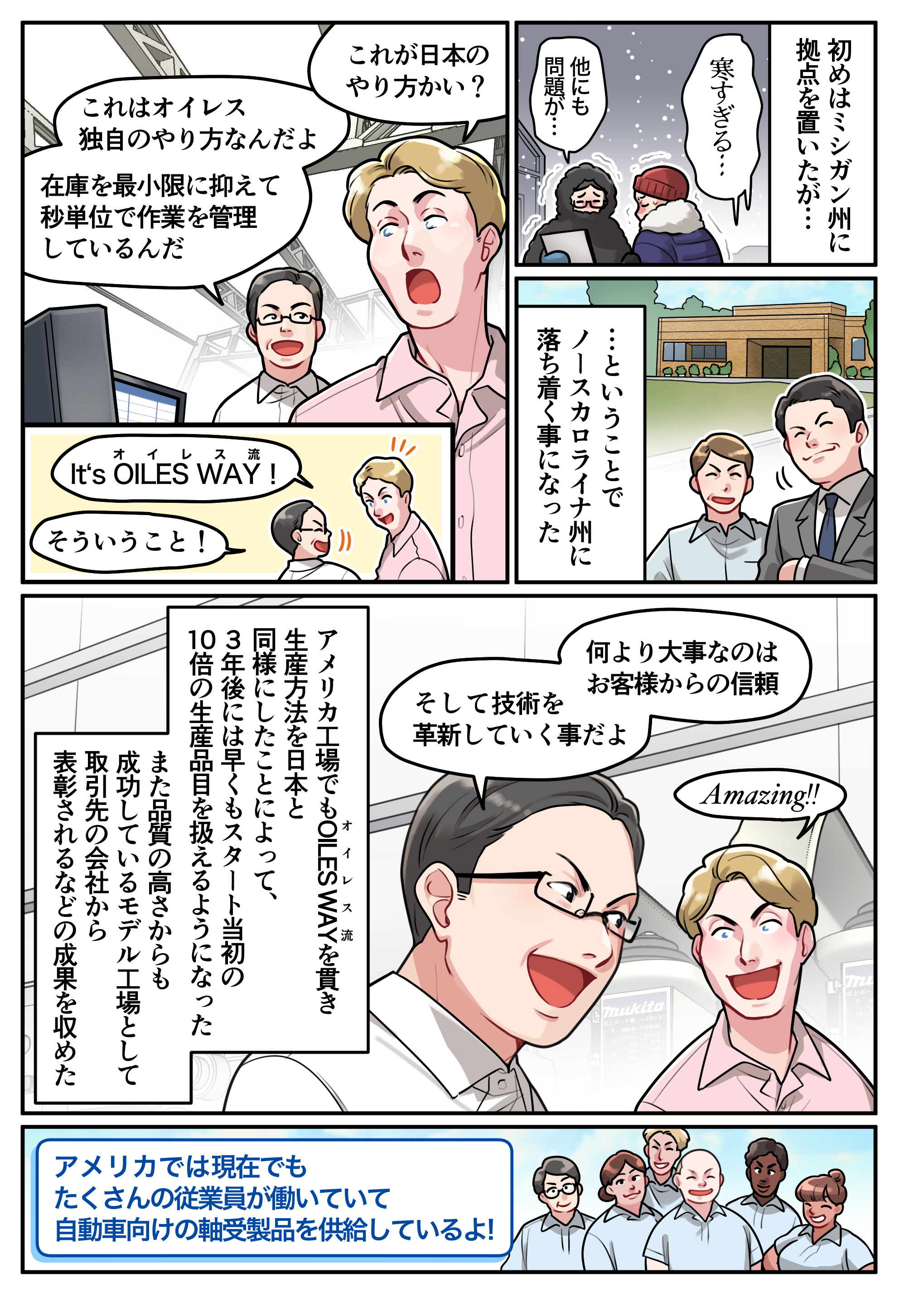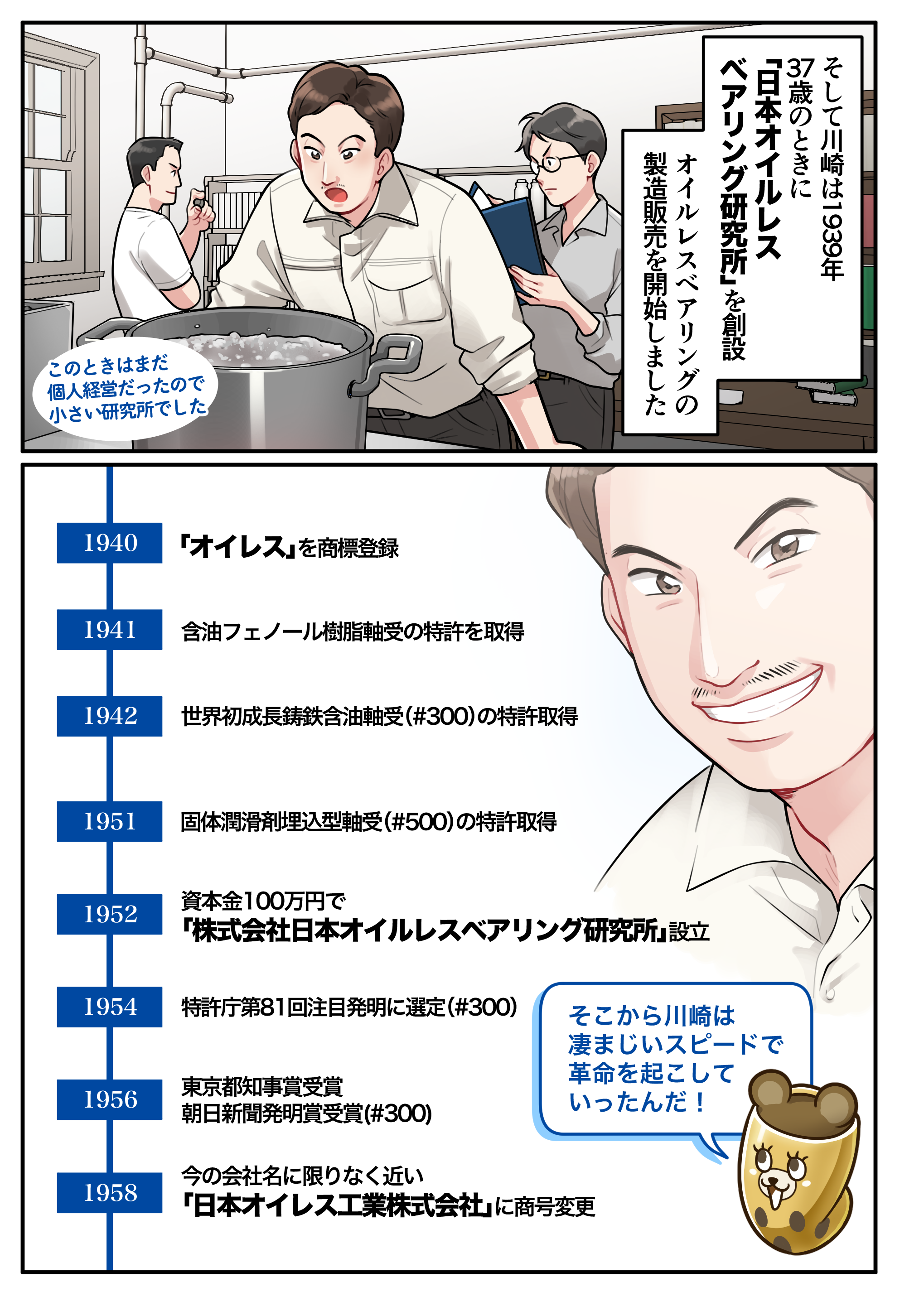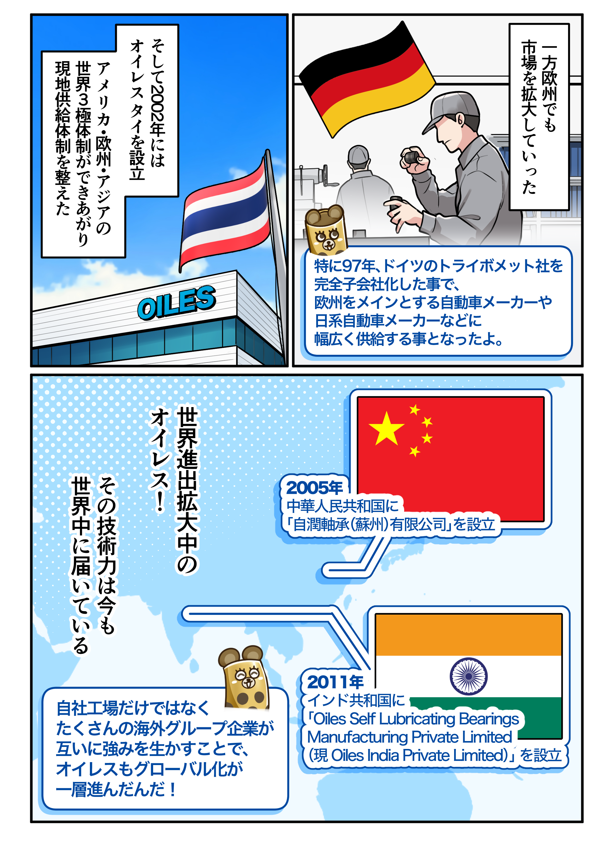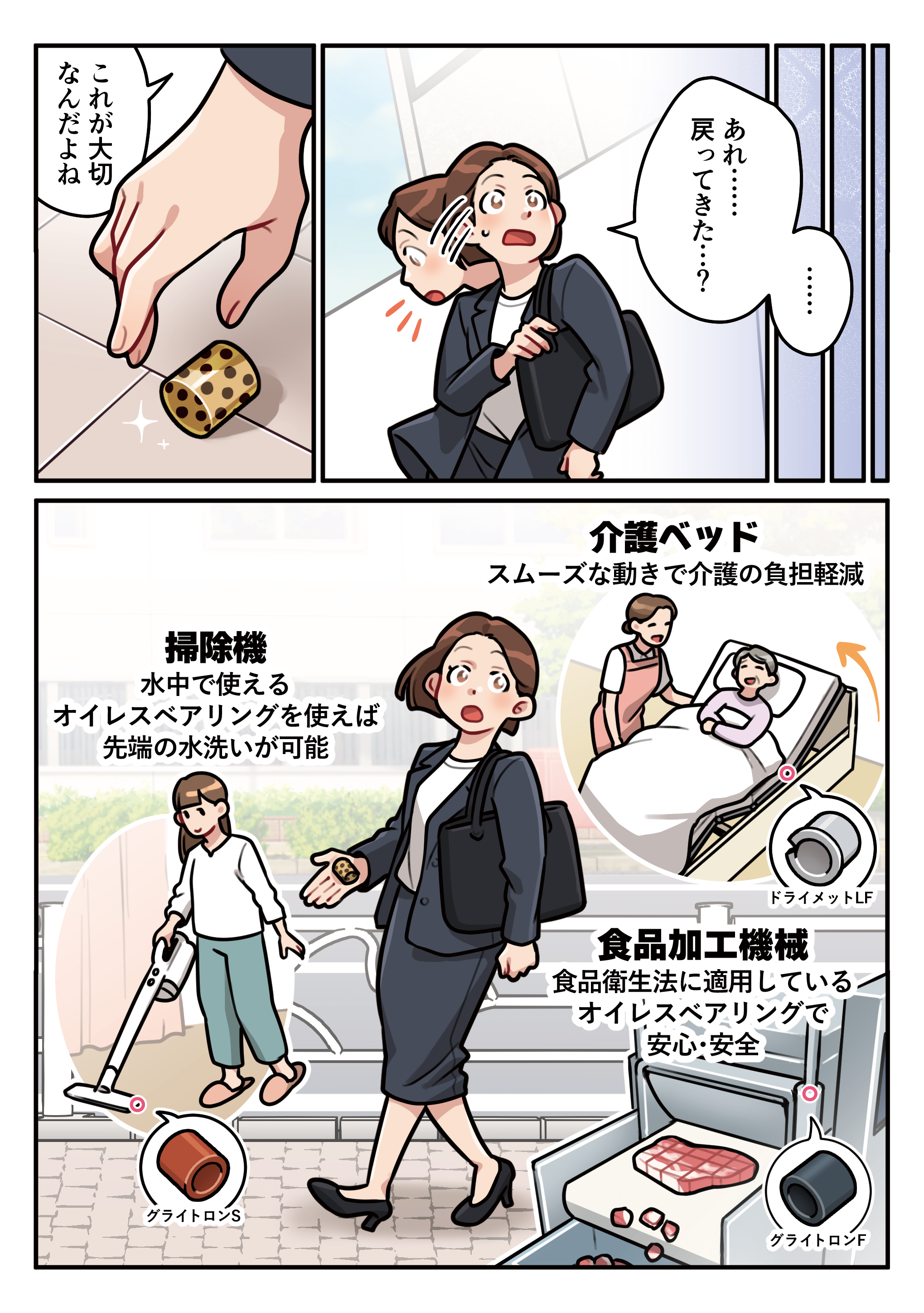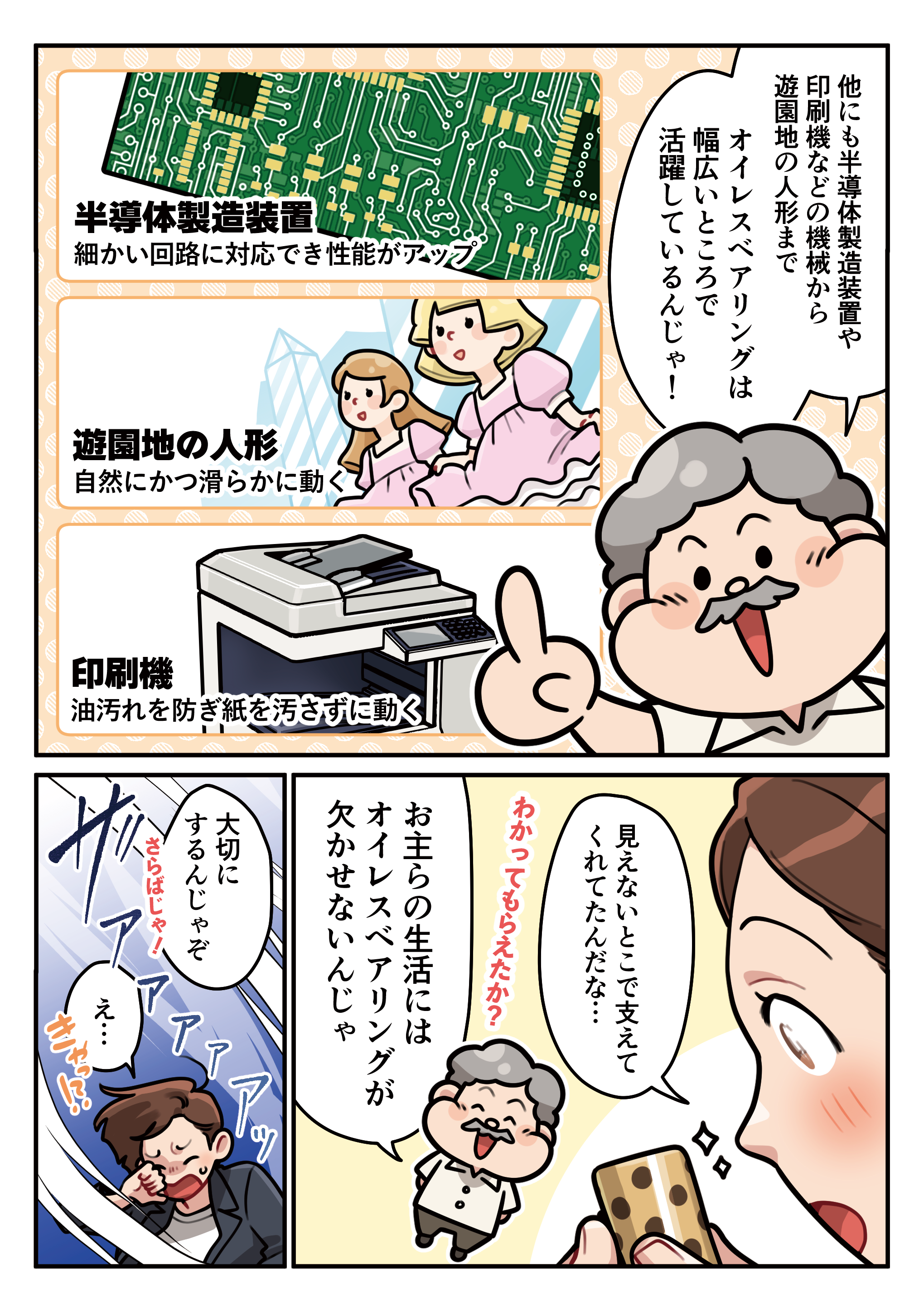 オイレス工業の事業などを漫画としてわかりやすく解説しています。