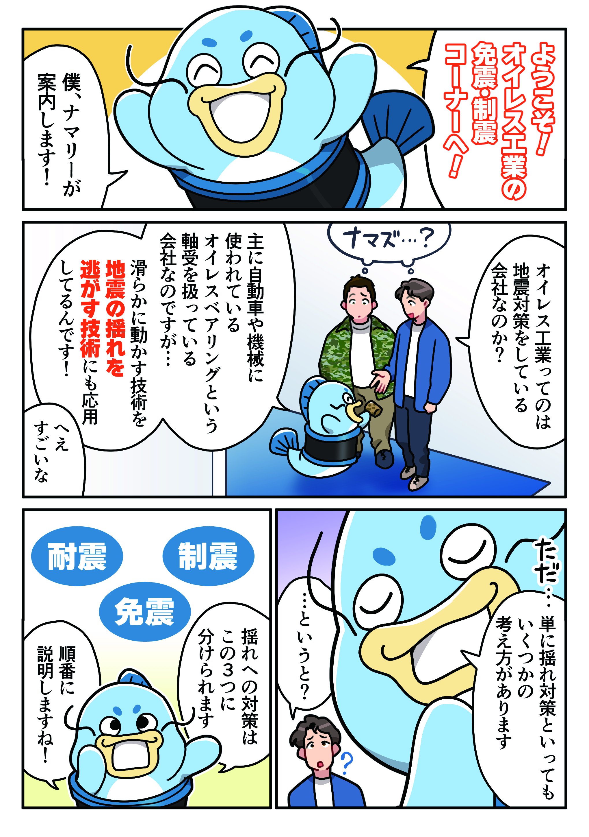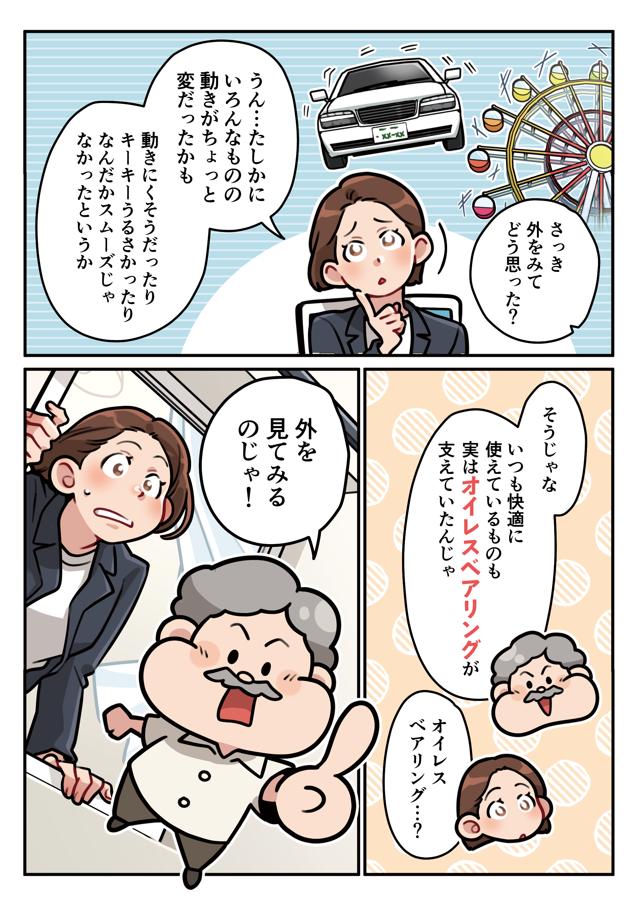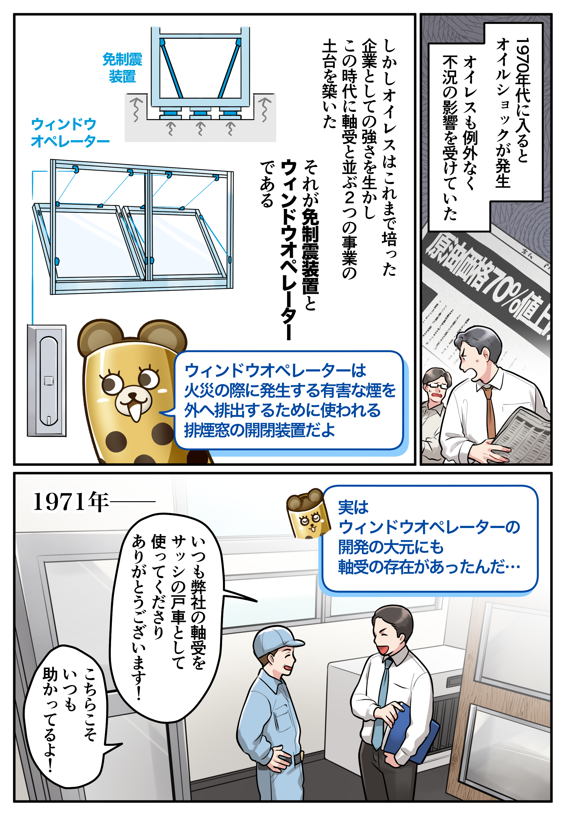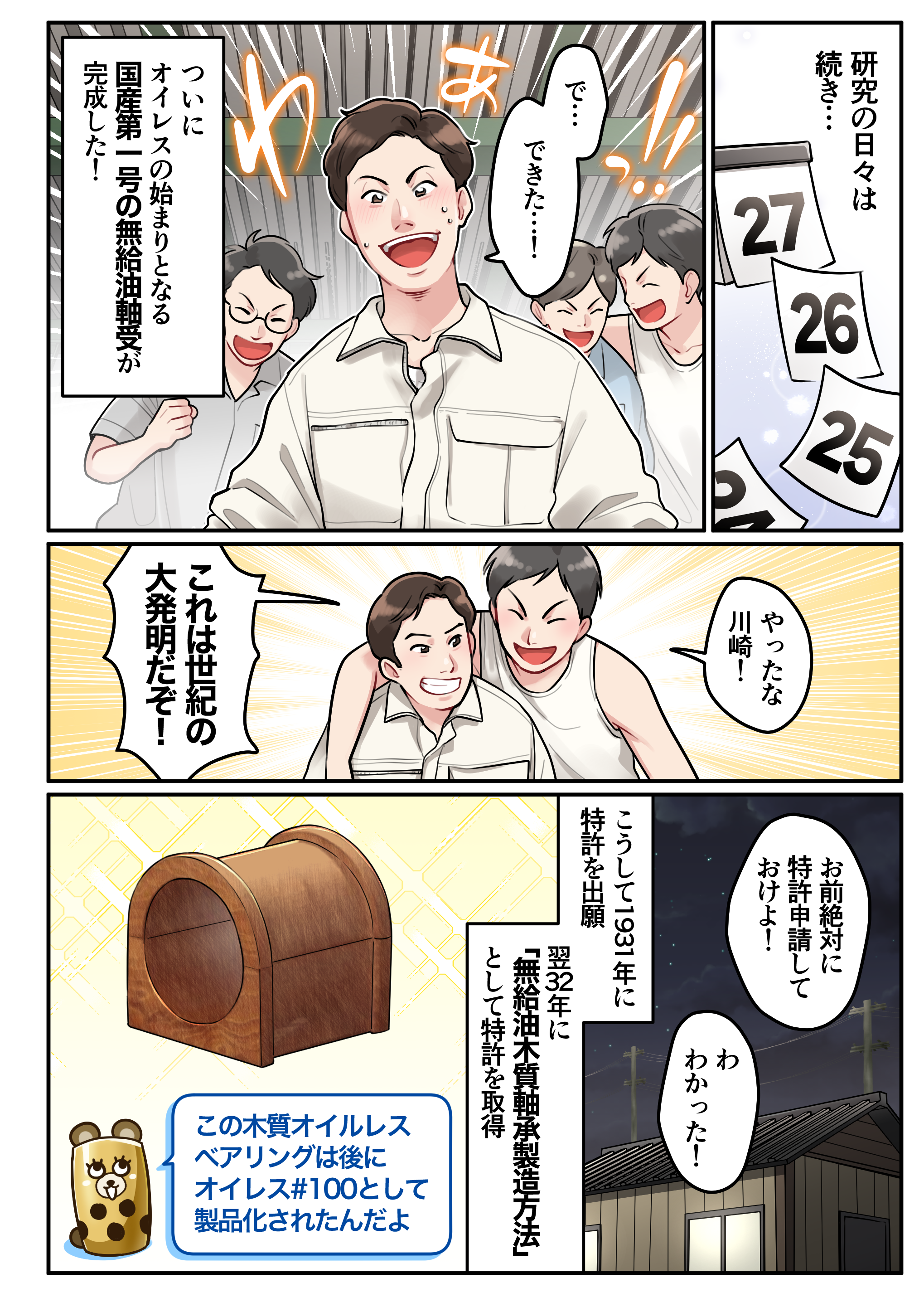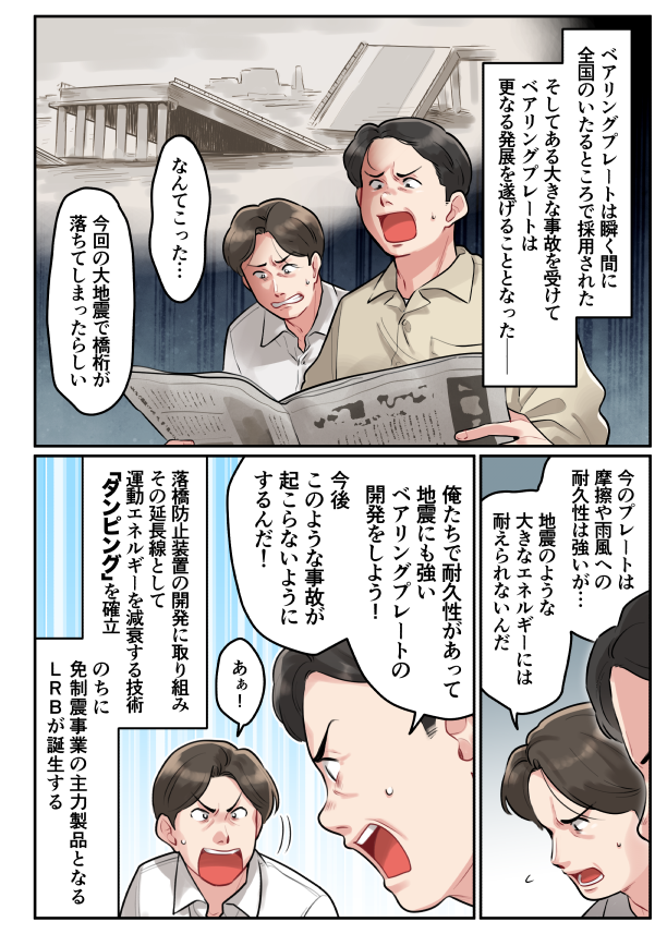 オイレスベアリングが支える世界。培ってきた技術と多様な活躍の場を、漫画にしてご紹介しています。