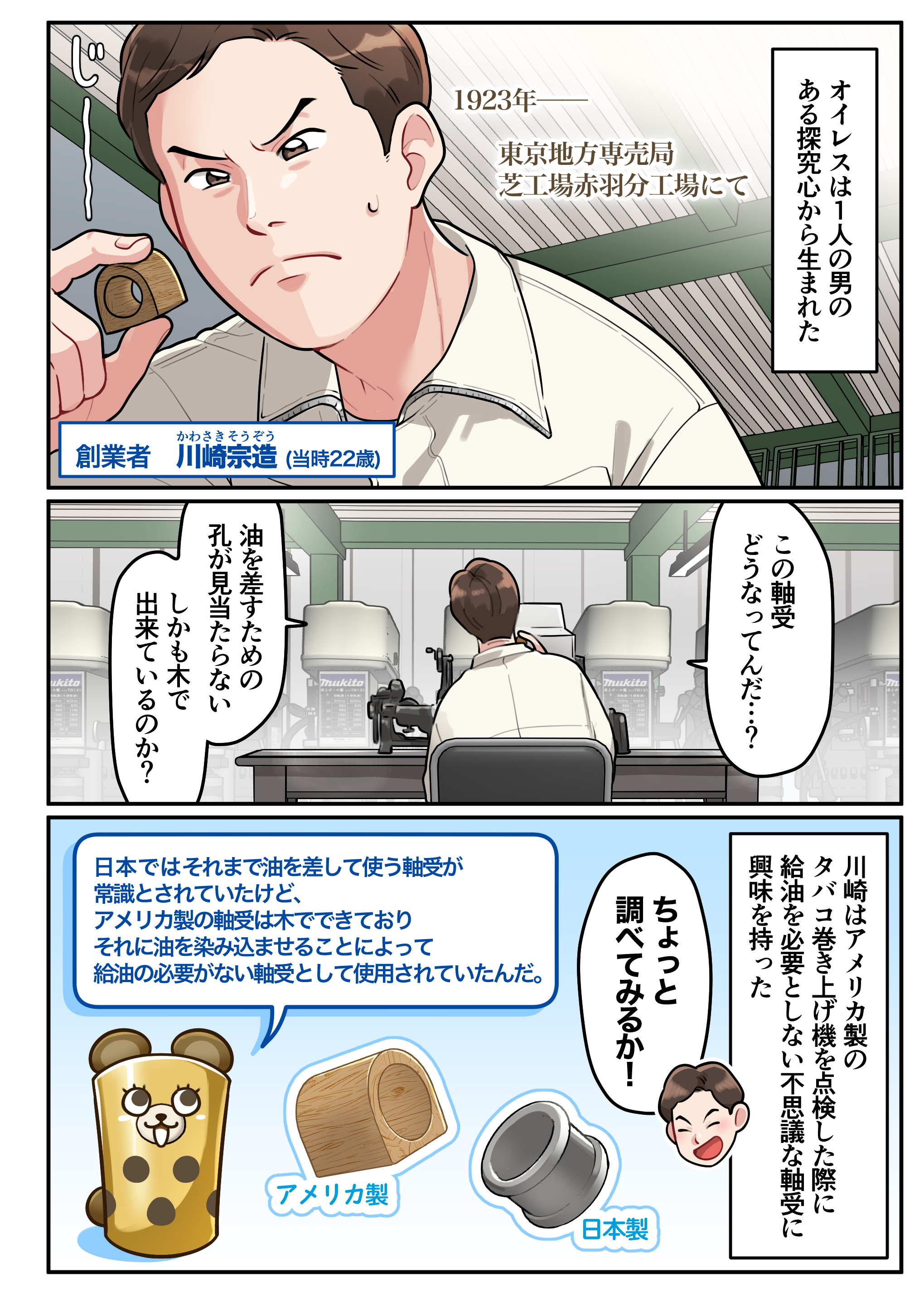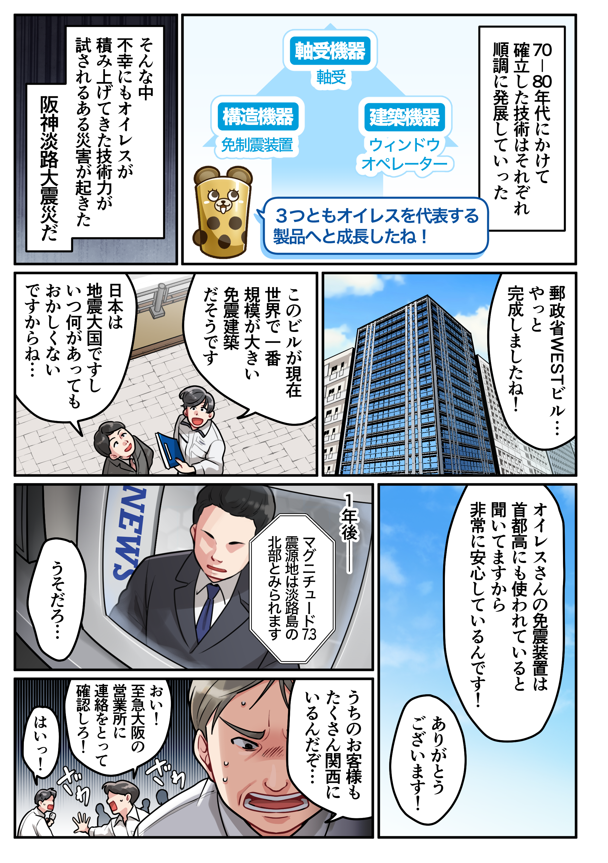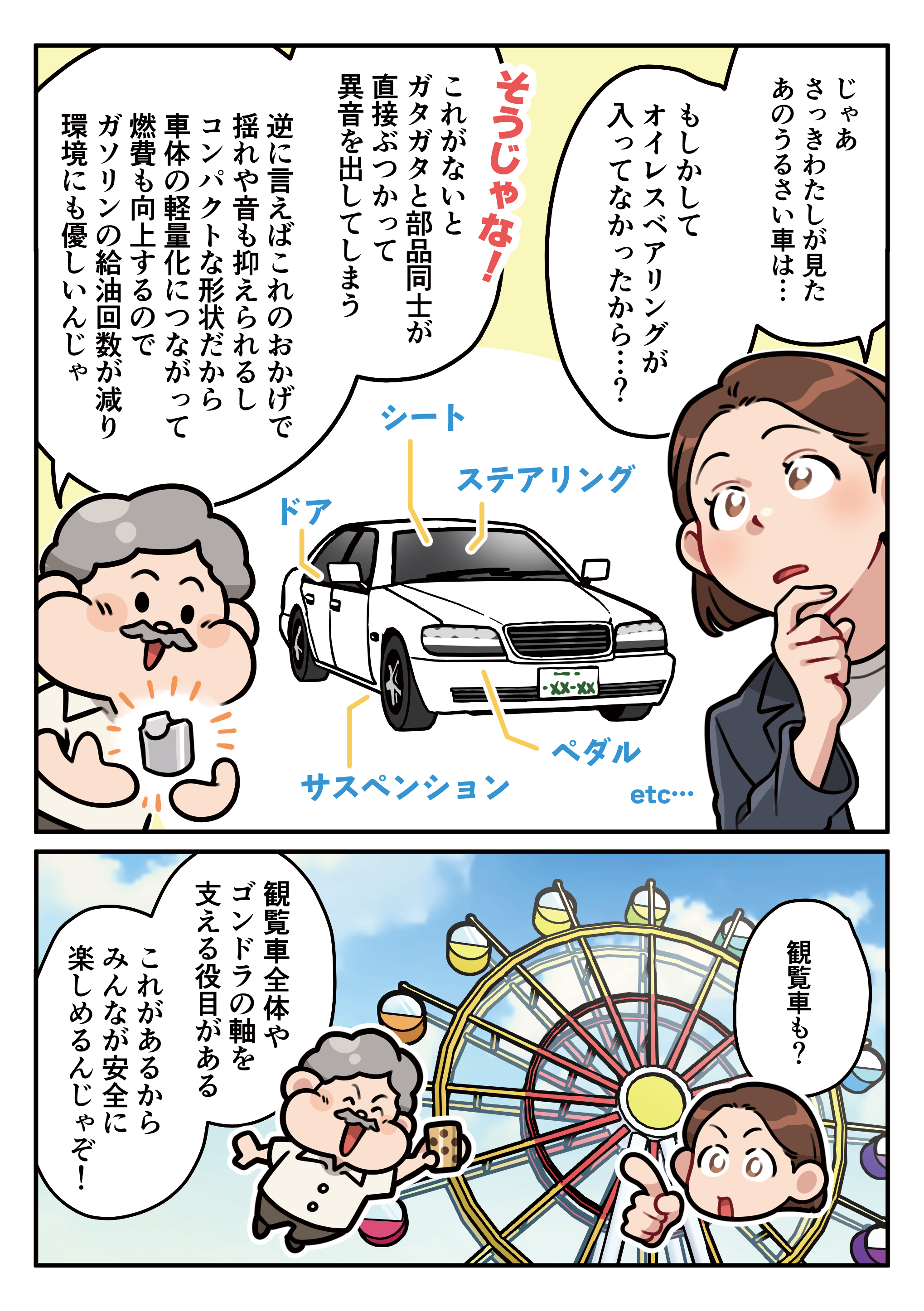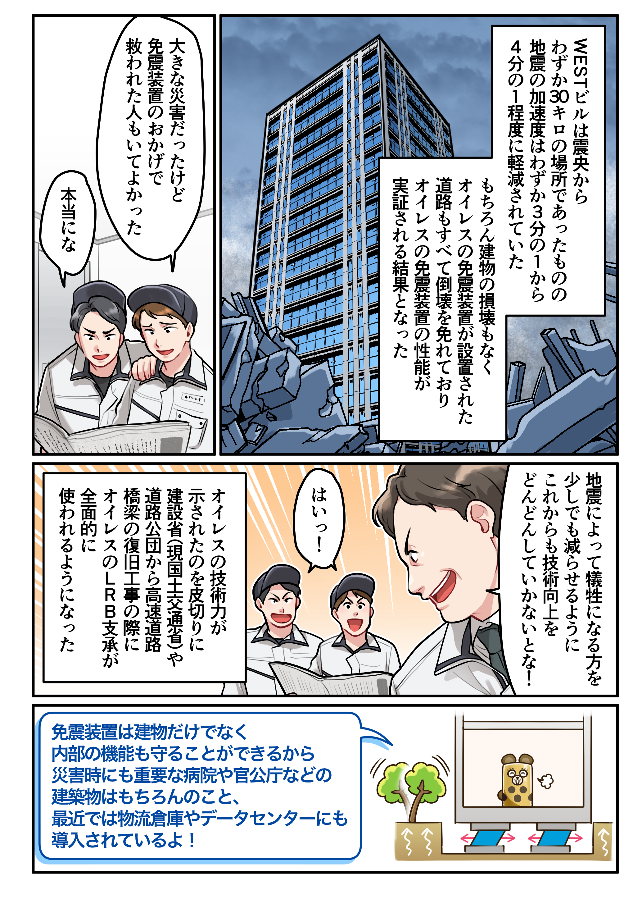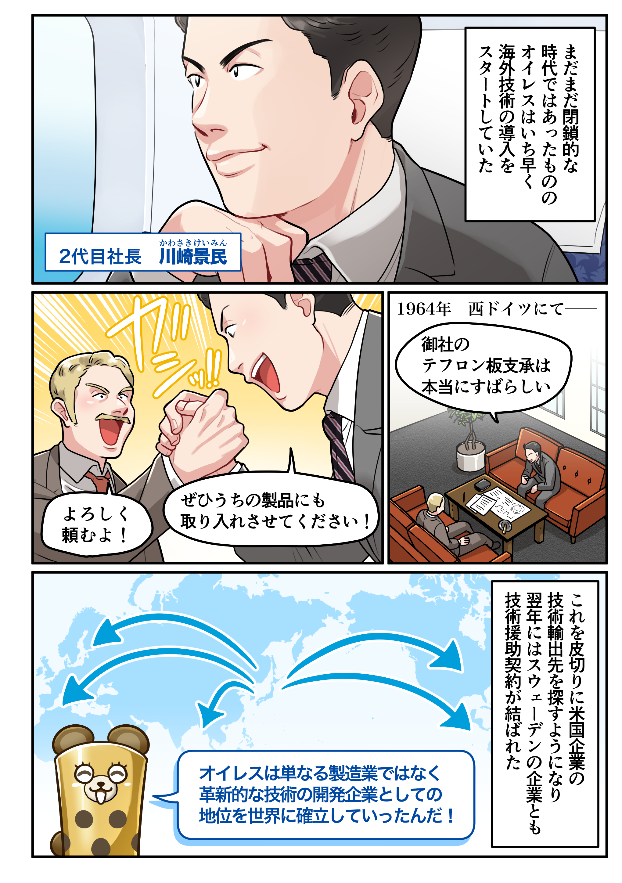 オイレスベアリングが支える世界。培ってきた技術と多様な活躍の場を、漫画にしてご紹介しています。