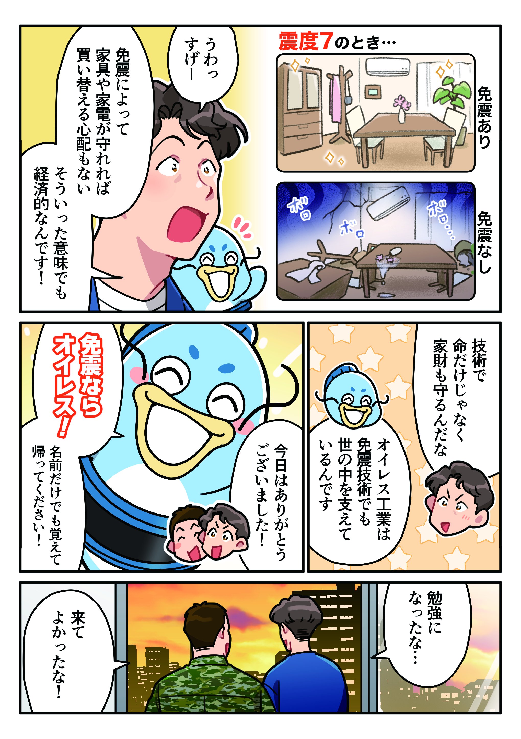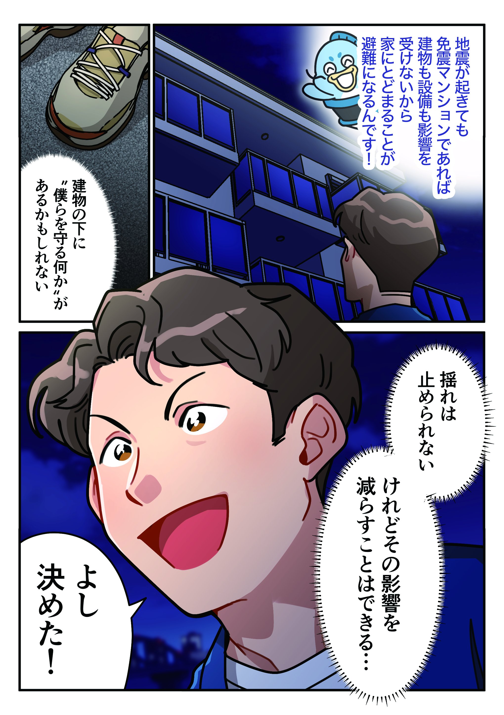 人々の幸せな日常を守る免震装置。そのしくみや特長を、漫画にしてご紹介しています。