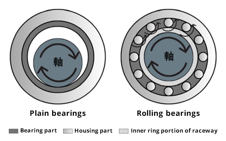 The other is a "plain bearings". The shaft is supported by sliding directly in the bearing. Both play the same role, but they are used differently depending on where and for what purpose they are used.