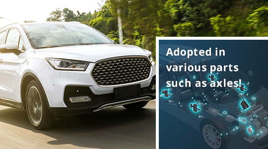 The lighter weight and lower friction contribute to EVs' longer driving distances. There is also a growing trend to replace conventional rolling bearings in automobiles with our Oiles Bearings.