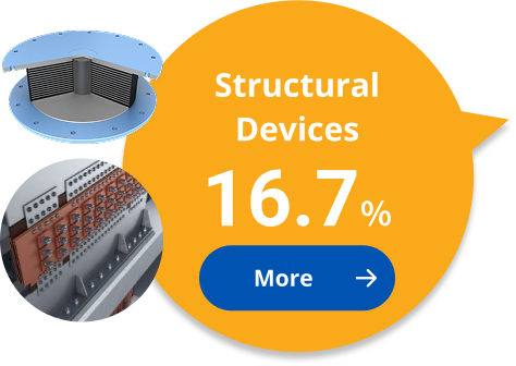 Our damping technology absorbs vibrations caused by earthquakes and external forces and reduces their amplitude. Especially applied to seismic isolation and vibration control devices, we have developed devices that mitigate vibration and absorb energy efficiently in order to control the energy of earthquakes. Through this technology, we have contributed to the construction of safe social infrastructure in Japan.