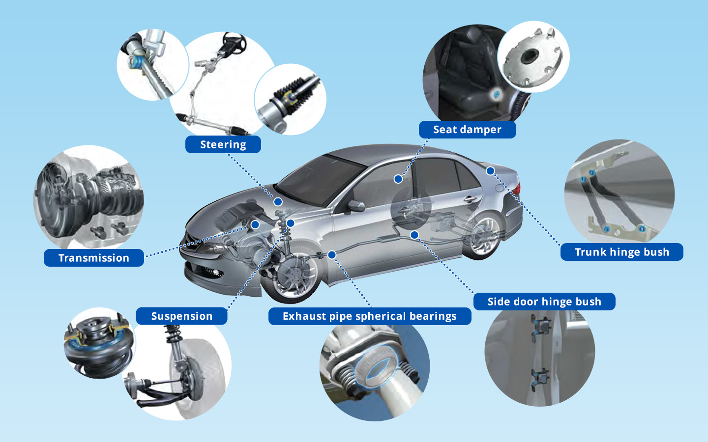 It contributes to the "running, turning, and stopping" of automobiles, as well as to quietness and ride comfort.