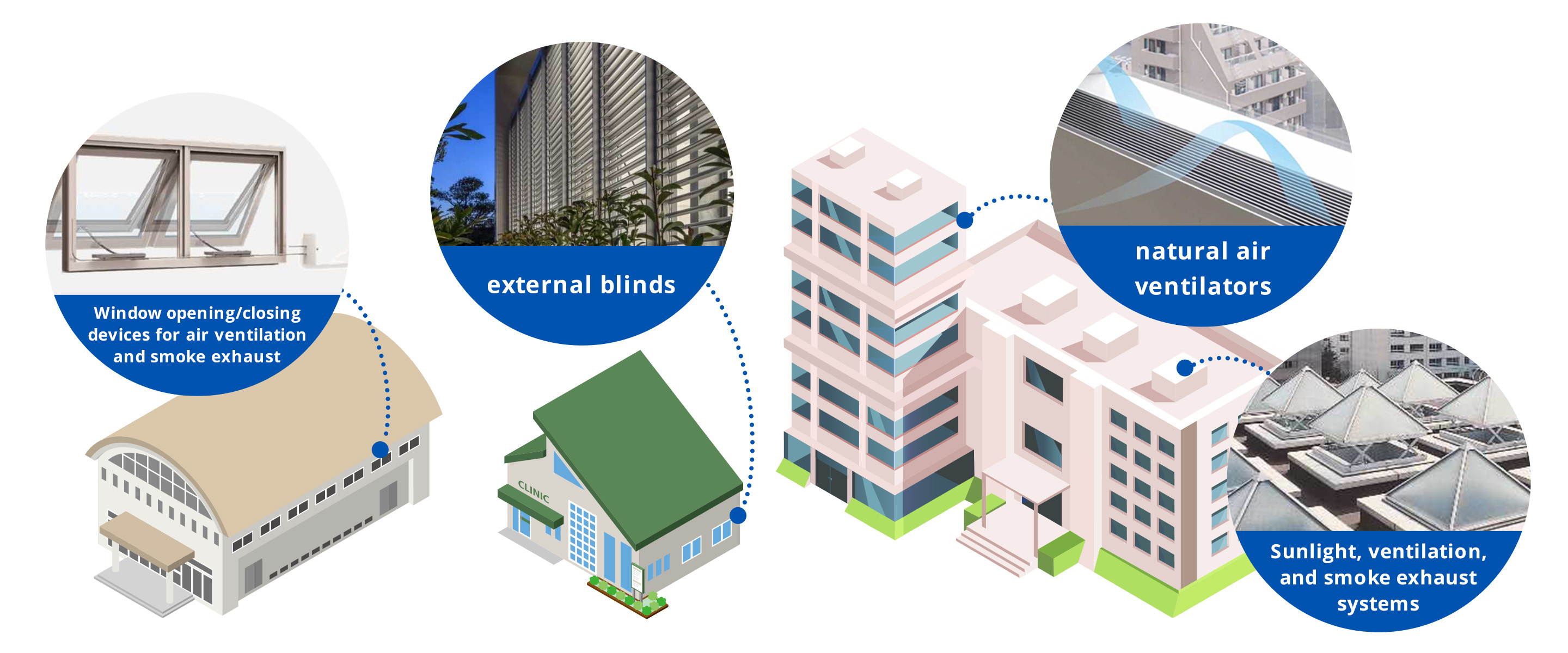 Smoke exhaust windows allow harmful smoke generated in the event of a fire to escape. "Window Operator", devices that open and close this smoke exhaust windows, help protect human lives and the safety of those inside buildings.