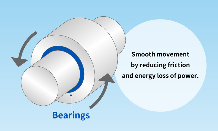 They firmly support the rotating shaft, and by supporting the load, they reduce friction between rotating parts and prevent unnecessary loss of energy. In other words, they are indispensable for efficient movement of objects.