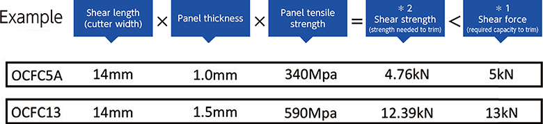 In this case, value of shear strength *2 is within a shear force. *1 Therefore it works, if shear strength exceed over the shear force, shearing trim disparities may occur with OCFC, and trimcut may not be properly done.