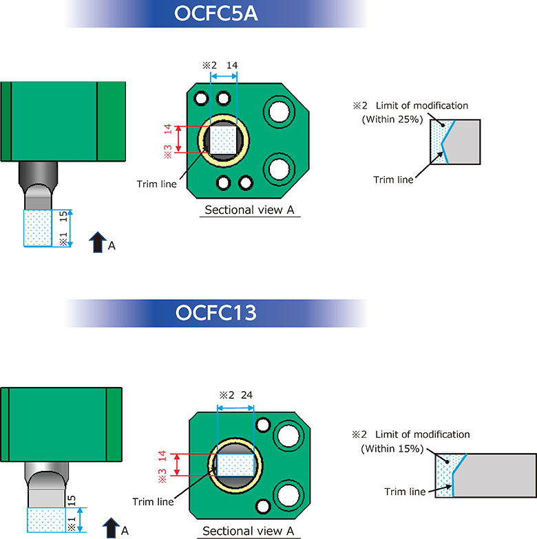 ※ OCFC5A is not designed to have a receiving surface, so when you use OCFC5A, be sure to check the dimensions and make shim adjustments or other adjustments as necessary.