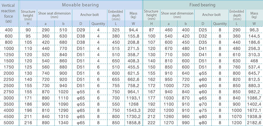 Compared with standard BP-B bearings (1000 kN movable bearings)