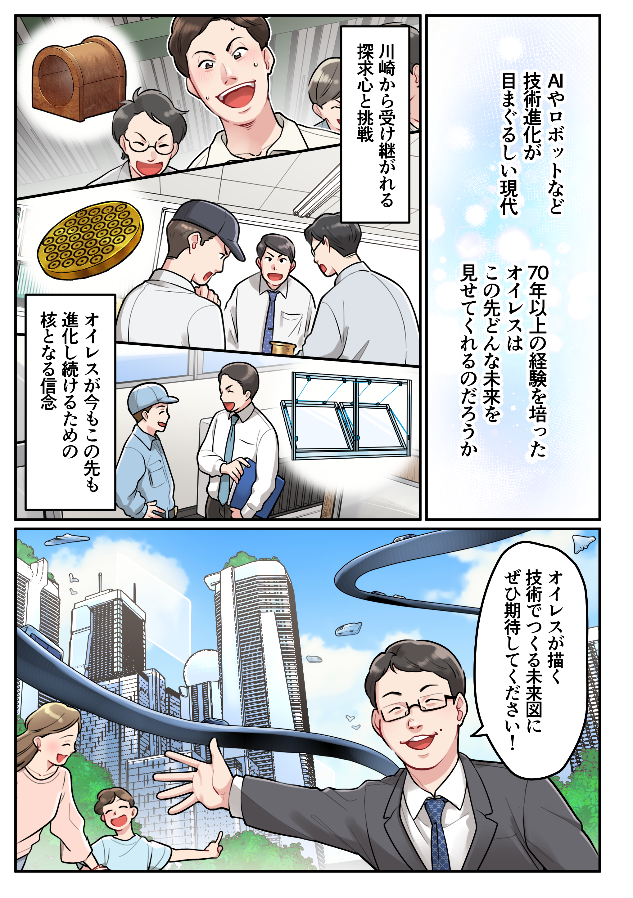 オイレス工業の事業などを漫画としてわかりやすく解説しています。