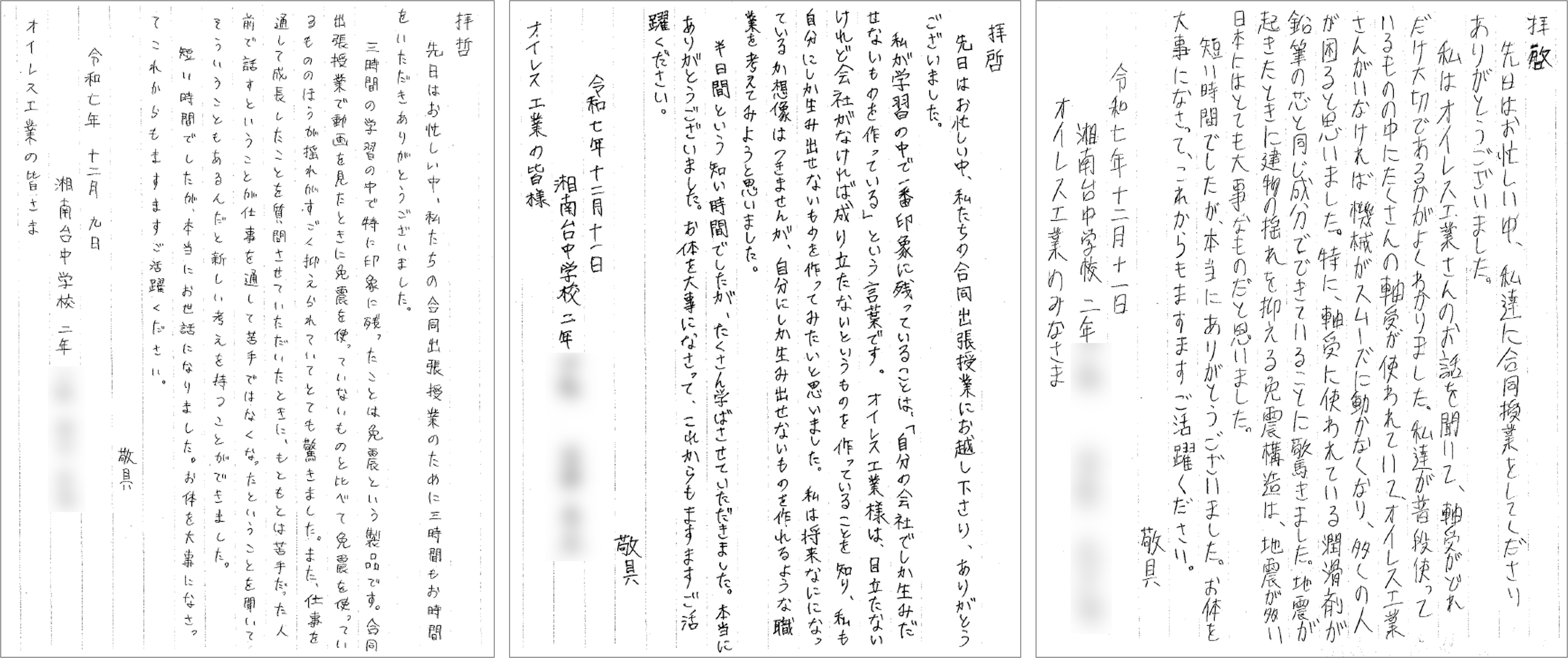 後日、授業についての感想やお手紙を頂戴しましたので、 その一部をご紹介いたします。